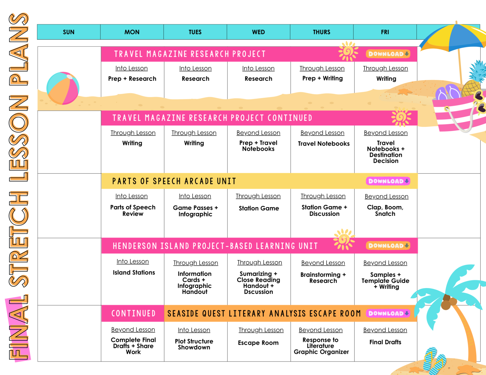- Day-by-day lesson plans for the final five weeks of the year