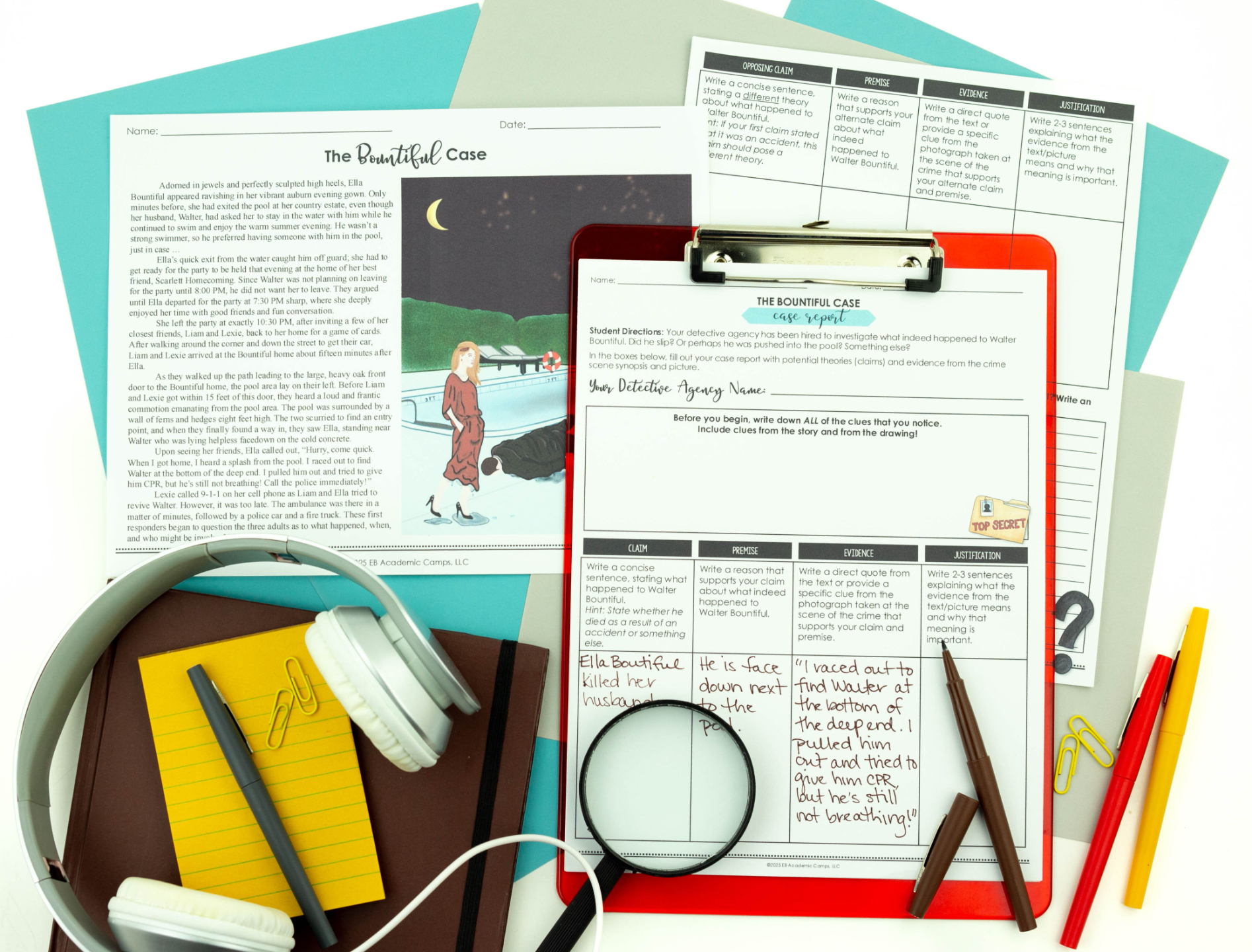 In this Detective Writing Unit, students are introduced to the curious case of Walter Bountiful, a character at the center of a strange and suspicious scene. Using a short mystery synopsis and a detailed visual “crime scene” image, students step into the role of detectives to figure out what really happened—and back up their theory with evidence and justification.