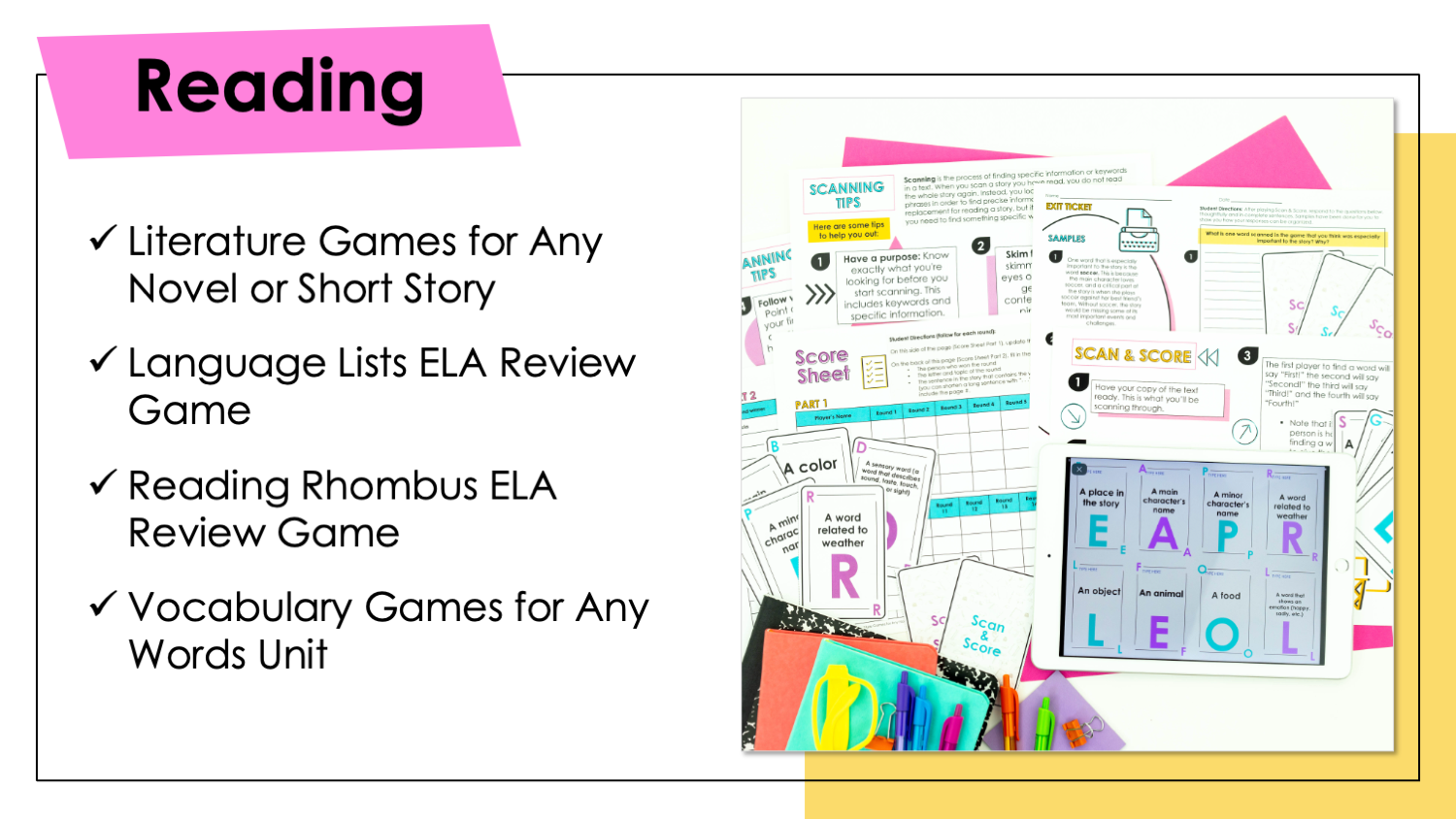 - Over 75 Engaging Reading Units (Literaure + Informational Texts)